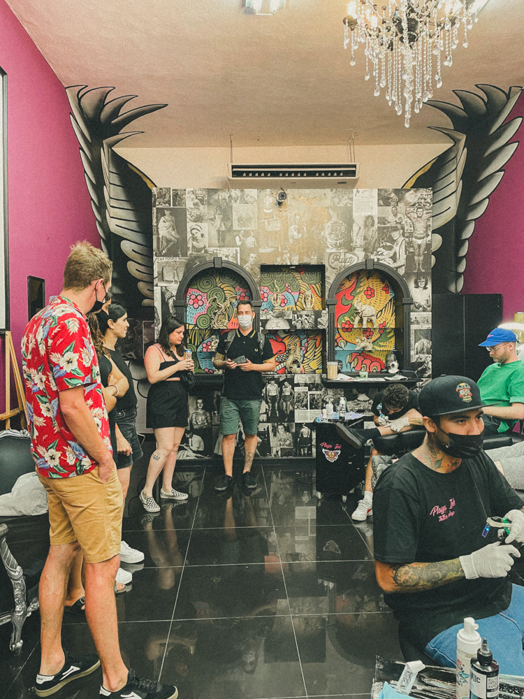 Located in downtown Playa del Carmen, Playa Ink was our go-to place to get matching tattoos with our colleagues. The two tattoo artists in the shop did not expect to see us all arrive with our Clamato beers in hand, ready to get tattooed one after another. Let's say we were respectfully loud that night, and there was a lot of excitement in the air.