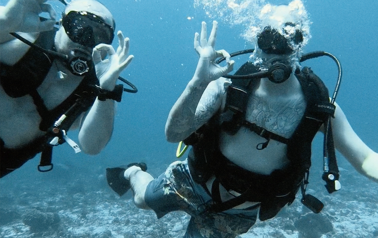 Cette année, l’équipe de plongeurs aguerris chez Locomotive invitait deux nouveaux apprentis à se joindre à l’aventure. Dominic Lord et Sébastien “Dust” Leblanc étaient prêts à tout pour découvrir les fonds sous-marins colorés. Ils ont tous deux finalisés un cours théorique et un cours pratique en piscine appelé “Discovery”, leur permettant ensuite d’effectuer des plongées avec le groupe. Un défi de contrôle personnel qui a assurément sorti nos collègues de leur zone de confort.