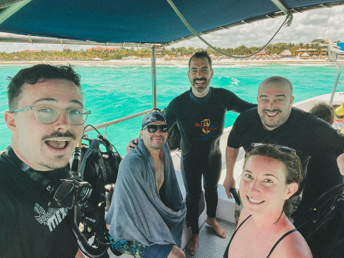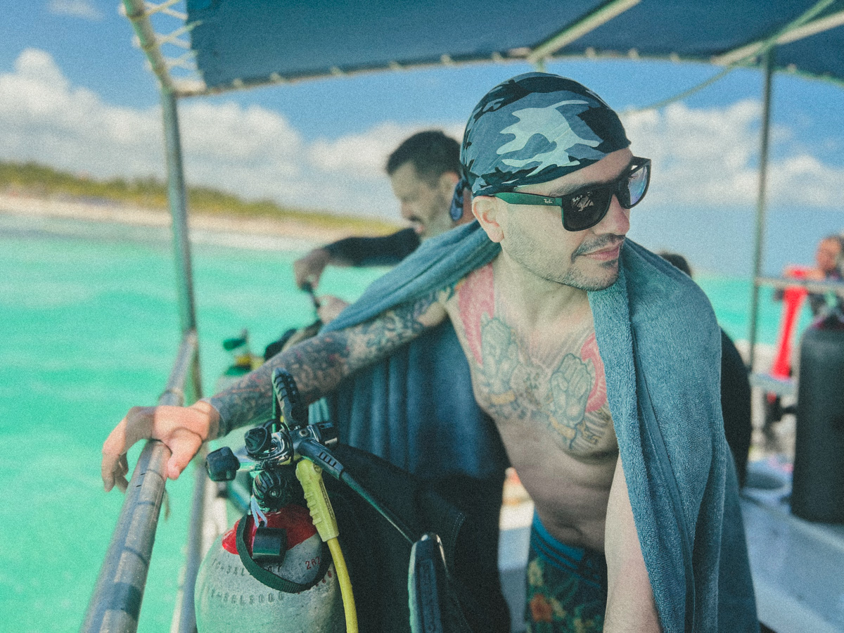 Les occasions de voyager furent plutôt rares dans les dernières années, alors les expéditions au large de Playa del Carmen étaient des moments spéciaux pour tout le monde à bord. Nos explorateurs ont commencé avec une plongée à Mama Viña où ils pouvaient explorer un crevettier échoué, habité par une énorme murène verte; la gardienne des lieux. Puis ils ont fait un « drift dive » à Barracuda pour y visiter des récifs de coraux en forme de main où chaque doigt racontait sa propre histoire. Ils nous ont dit qu’ils avaient eu l’impression de flotter dans l’espace.
